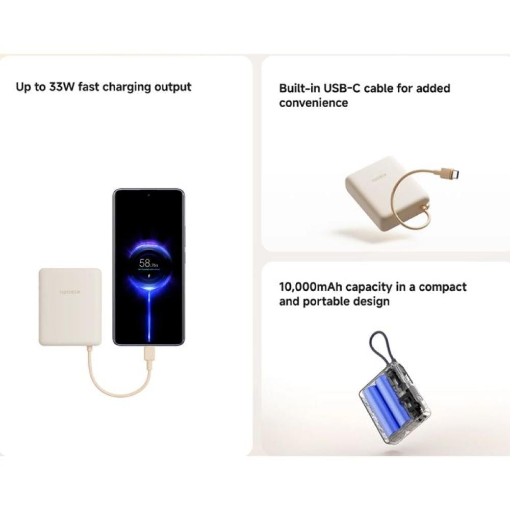 شاحن متنقل شاومي بمنفذ USB ومنفذ USB-C وسلك مدمج USB-C بسعة 10000 مللي أمبير