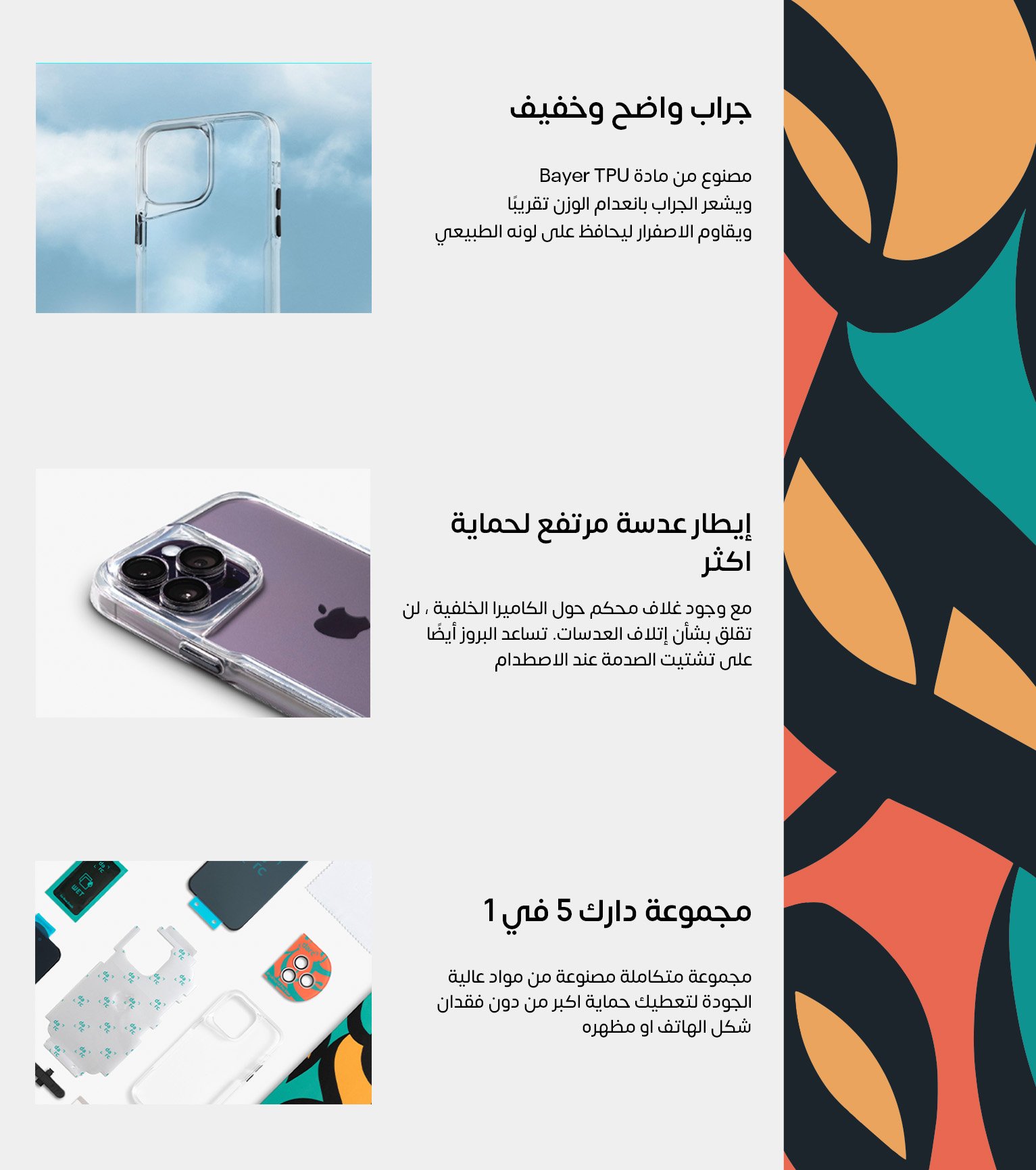 بكجات حمايةدارك مجموعة حماية متكاملة 5 في 1 الضمان البلاتيني لاجهزة الايفون 16