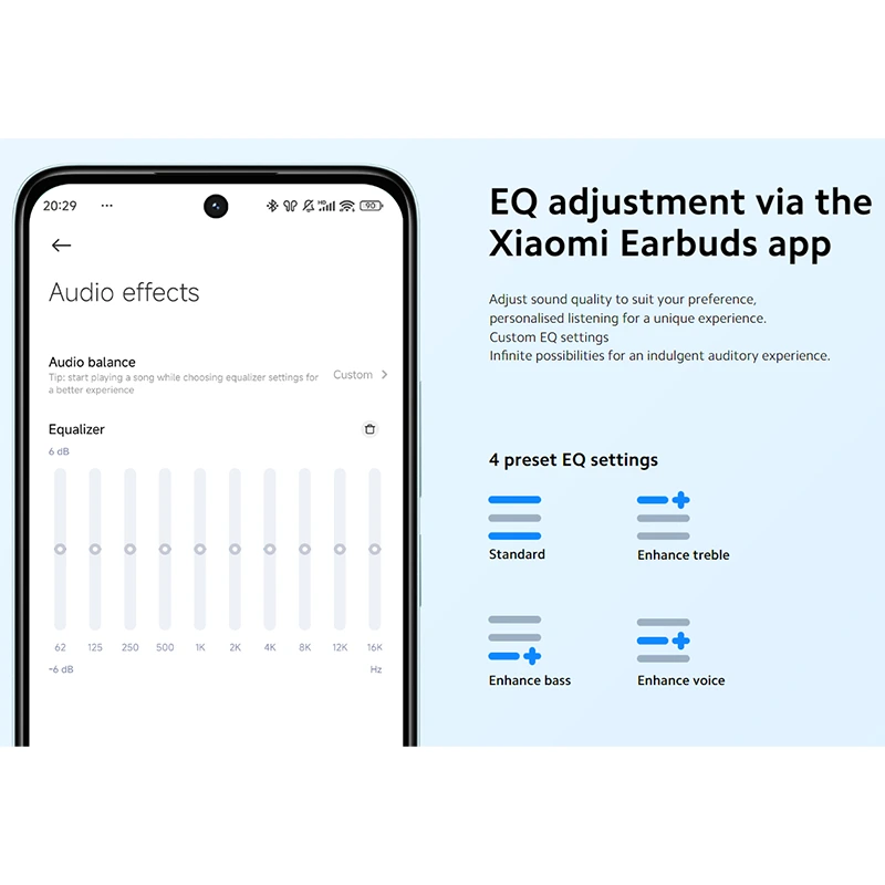 إذا كنت تبحث عن أفضل سماعة لاسلكية توفر لك صوتًا نقيًا، وتصميمًا خفيفًا، وعمر بطارية طويل، فإن شاومي بودز 6 لايت هي الخيار المثالي لك. تم تصميمها لتوفر لك تجربة استماع استثنائية سواء كنت تستمع إلى الموسيقى، أو تشاهد الفيديوهات، أو تجري المكالمات.
