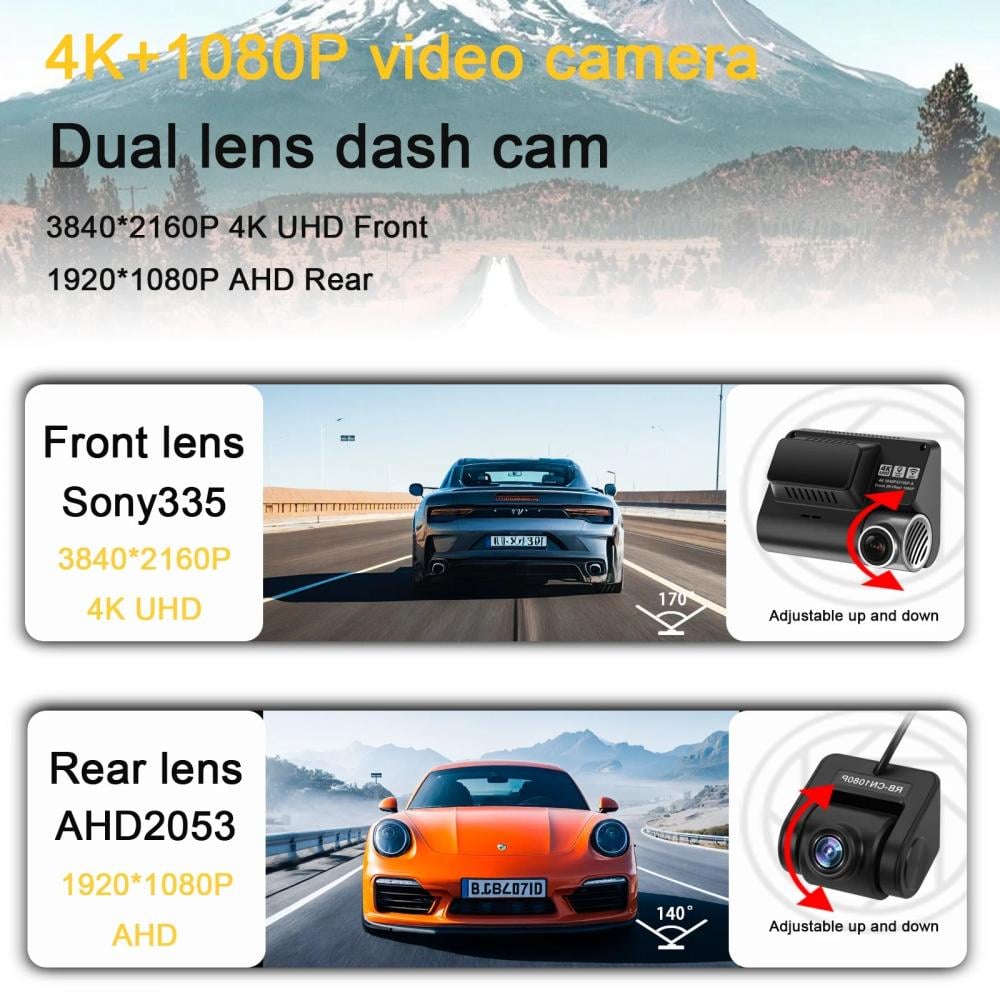 تم تجهيز مسجل القيادة هذا بكاميرتين، مما يسمح لك برؤية التفاصيل حول السيارة بوضوح. يوفر لك جودة صورة رائعة مع مجال رؤية أوسع مما يقلل بشكل فعال من البقع العمياء.